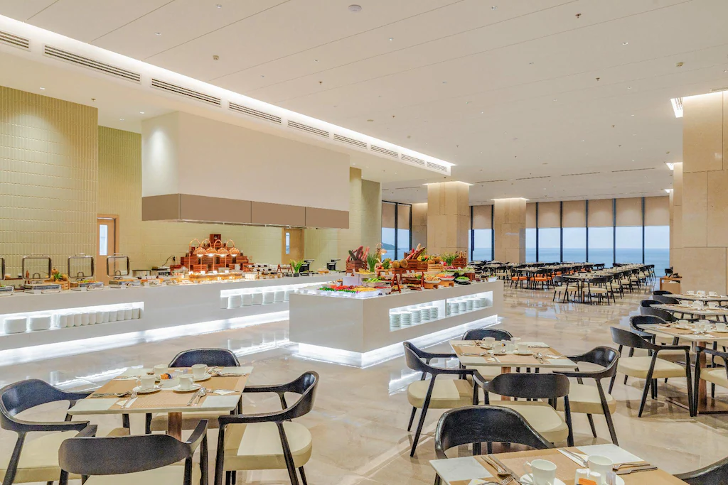朝食はビュッフェ形式で、ベトナム料理と洋食がバランスよく並びます。