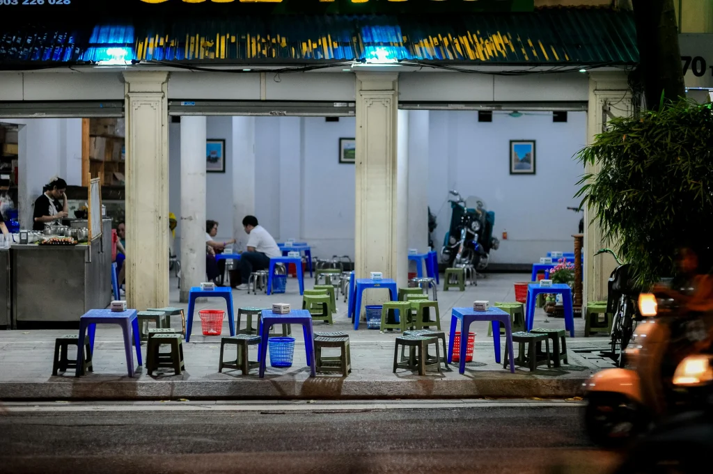 朝のダナンを歩くと、だいたい同じ光景に出会います。 小さな椅子と低いテーブル、立ちのぼるスープの湯気、バイクでさっと来て、さっと食べて、さっと帰る人たち。 「朝から外で食べるのが普通なんだ」と、旅のはじめにちょっと驚くかもしれません。 -
